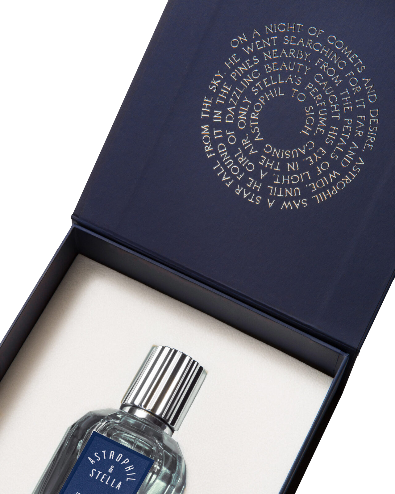Bei Astrophil & Stella Parfums dreht sich jeder einzelne Duft um das magische Gefühl der unwiderstehlichen, undurchdringlichen und unerschütterlichen Liebe. Vier Parfümeure sorgen dafür, dass jeder einzelne Duft aus den Astrophil & Stella Kollektionen seine absolute Perfektion erreicht und dabei immer die absolute Hingabe zur Liebe selbst im Herzen trägt. Dafür greift Astrophil & Stella auf eine sagenumwobene Legende zurück, die beinahe in Vergessenheit geriet – die Liebesgeschichte von Astrophil & Stella. Er, Astrophil, ein einsamer Mensch, der sich jede Nacht zu seiner großen Liebe wünschte und Stella, ein Stern am Himmel, mit strahlender Schönheit gesegnet und erschaffen, um ihren Weg zu Astrophil zu finden. Als beide Welten sich miteinander verbinden, nehmen Astrophil und Stella zunächst nur eines voneinander wahr: Ihren himmlischen Duft. So entsteht das erste Mal ein Gefühl der Liebe, das die Beiden auf ewig verbinden wird.