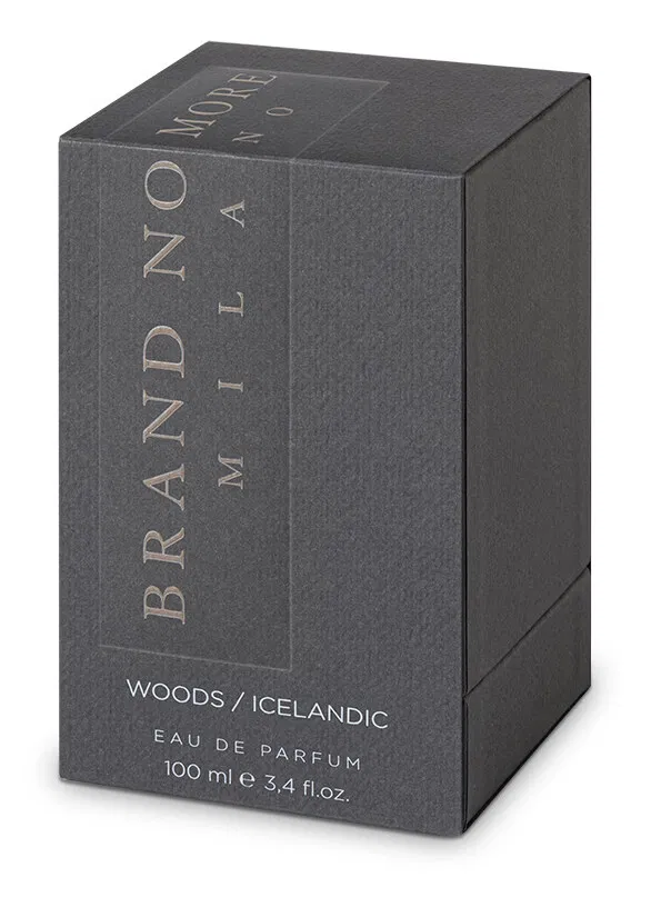 Verpackung & Design des Eau de Parfums „Woods / Icelandic“ von Brand No More Parfums