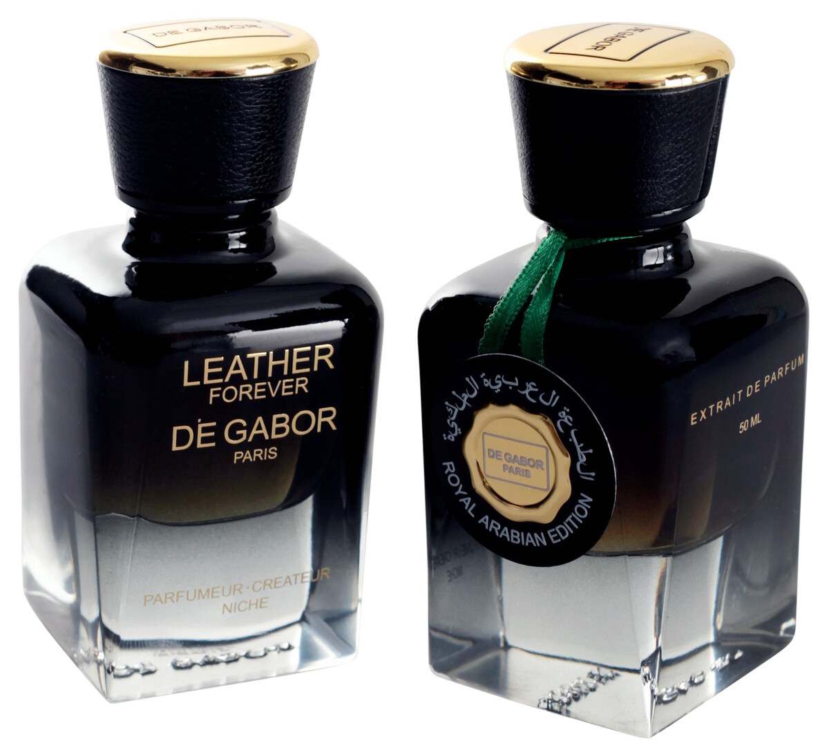 Mit Leather Forever Royal Arabian Edition von De Gabor Parfum ist ein außergewöhnlich kräftiger und aromatischer Duft entstanden, der pure Verführung verspricht – ein Wohlgenuss, der die Sinne sofort für sich einnimmt. So präsentiert sich das Extrait de Parfum auch optisch von einer markanten Seite, inspiriert von einem wundersamen Farbverlauf. Im unteren Bereich ist das schwere Glas des Flacons vollkommen klar und rein, wird nach oben hin aber immer dunkler und geheimnisvoller, bis es schließlich auf Höhe des Verschlusses in einem tiefen, magischen Schwarz endet. So sticht auch die goldene Schrift auf der Vorderseite besonders markant heraus, die den Namen des Extrait de Parfums „Leather Forever“ präsentiert, dicht gefolgt vom Markennamen von De Gabor Parfums. Die besondere Exklusivität der Leather Forever Royal Arabian Edition wird durch ein seitlich angebrachtes Etikett deutlich, auf dem mit orientalischen Schriftzeichen der vollständige Name des Duftes seinen Platz findet – und so wird Leather Forever Royal Arabian Edition von De Gabor Parfums besonders schön in Szene gesetzt. Der schwarze Verschluss, der mit einer Schicht Leder überzogen wurde, rundet das Design ab, vollendet von einer goldenen Kappe, die auf dem Verschluss platziert wurde, um den puren Luxus hinter den De Gabor Parfums und Leather Forever Royal Arabian Edition zu unterstreichen.