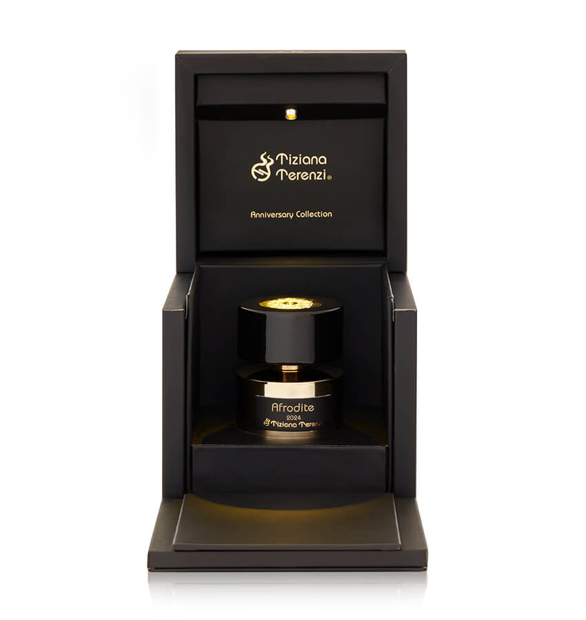 Sie erhalten das Extrait de Parfum „Afrodite“ von Tiziana Terenzi in einem 100 ml Flacon, der mit seiner schwarz-goldenen Gestaltung nicht nur besonders elegant wirkt, sondern auch perfekt zur Anniversary Collection passt.