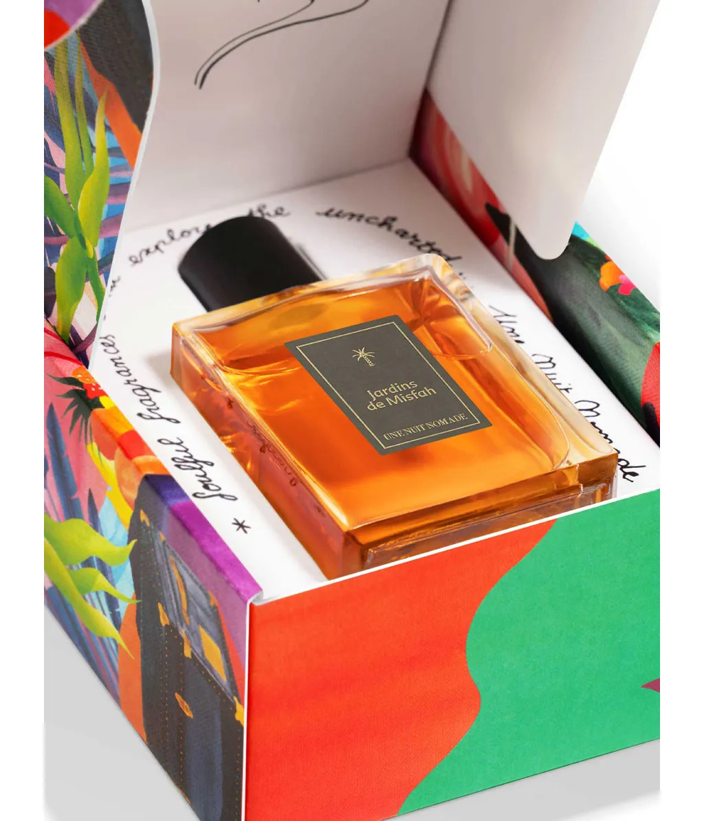 Verpackung & Design des Eau de Parfums „Jardins de Misfah“ von Une Nuit Nomade