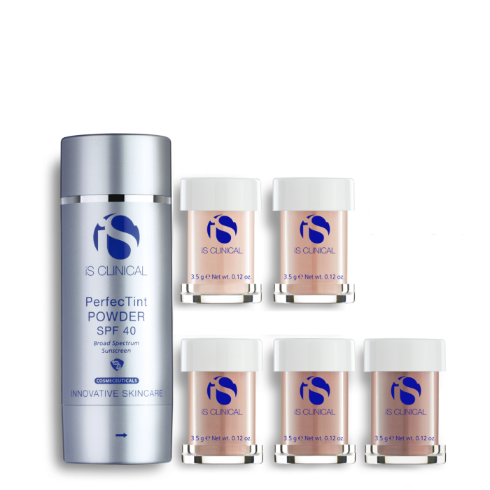 Das PerfecTint Powder SPF 40 von iS Clinical ist eine wahre Sensation, die zu den beliebtesten Produkten von iS Clinical gehört – und das mit gutem Grund! Dieses zarte Gesichtspuder stellt nicht nur ein mattes Finish auf Ihrer Haut sicher, sondern bietet gleichzeitig auch einen intensiven UV-Schutz und viele feuchtigkeitsspendende Extrakte, um die Haut auf ganzer Linie zu verwöhnen. Während die meisten Puder für das Gesicht die Haut in erster Linie belasten, überzeugt das PerfecTint Powder SPF 40 von iS Clinical mit hautpflegenden Inhaltsstoffen, die zu mehr Wohlbefinden und Gesundheit beitragen. Ein Highlight sind natürlich die fünf verschiedenen Farben, in denen das Gesichtspuder PerfecTint Powder SPF 40 von iS Clinical erhältlich ist. Jede einzelne dieser Varianten sorgt für eine seidenweiche Abdeckung der Gesichtshaut und bietet so einen intensiven Schutz vor den schädlichen Auswirkungen der UV-Strahlung. Gleichzeitig minimiert das PerfecTint Powder SPF 40 von iS Clinical das Erscheinungsbild von Poren und absorbiert oberflächliche Ölablagerungen, um so zu einem makellosen, matten Finish zu führen. Der intensive Schutz vor schädlicher UV-Strahlung wird durch ein Breitbandspektrum mit UV-A und UV-B Schutz unterstrichen, das einen Lichtschutzfaktor 40 bei dem Puder garantiert. Verschiedene Pflanzenextrakte tragen dazu bei, auch in Pulverform des PerfecTint Powder SPF 40 von iS Clinical wertvolle Feuchtigkeit zu spenden und so das Make-Up Puder zu einem echten Highlight für die Hautgesundheit zu machen. Sie erhalten das Gesichtspuder PerfecTint Powder SPF 40 von iS Clinical in folgenden fünf Farbtönen: